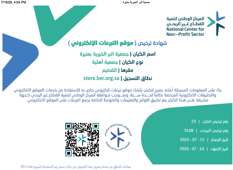 سيتم الاستقطاع الأول عند اتمام التبرع الآن، أما الاستقطاع التالي بحسب التاريخ المحدد من قِبلكم إرسال نسخة من